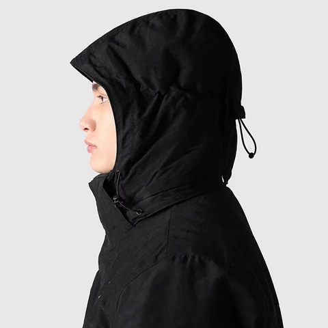 Capucha con cierre a presión y cordón de ajuste en la parte trasera y delantera